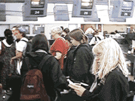 We gather outside the Jasmin hotel. About 1/3 of the group is staying on in Europe and everyone lingers, looking to be sure last hugs have been given and good-byes said. Last night, as they got off the busses, a large group gathered outside the hotel for a "group hug." With their arms around each other in a ring they swayed and sang "Lean on Me". Mario, one of our drivers, broke all the stereotypes we have heard about the Germans and joined in. He speaks almost no English, but clearly has picked up on the genuine affection our group feels toward him. Quite a few members of this orchestra have now graduated from CHS and will not be coming back to play again. This morning Laura Thomas seeks each one out for a special good-bye and hug. And then it's on to the airport. Andreas and Irene are there to see us off. We take a short hop to Frankfurt and then a very long flight to Dulles that is listed on our tickets as leaving at 1:30 and landing in the US at 3:45. Despite those reasonable-sounding times, it will be a very long day. As we touchdown at Dulles I hear comments about things looked forward to that were unavailable in Europe: "soft drinks with ICE," someone says, "and free refills." Another adds "I'm going to go right out and get me some fried chicken." An aisle over someone else joins in the litany: "How about just having money I can understand." It is clear that despite the incredible experiences of the last 10 days, these guys are very glad to be home again.